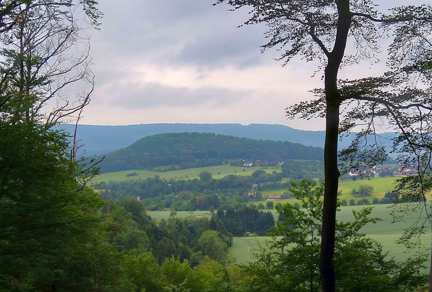 | den Weg begleiten vor allem Abbruchkanten von gelb-grauem Keuper und alte, überwachsene Steinbrüche, roter Sandstein ist hier selten |